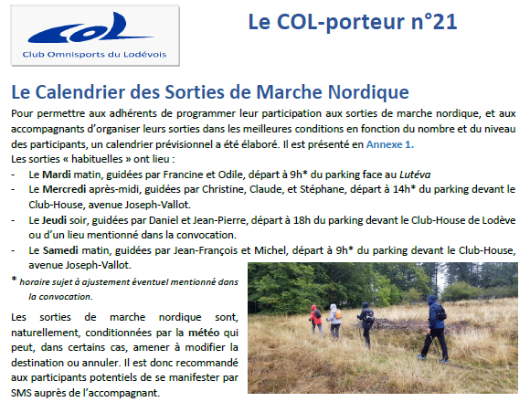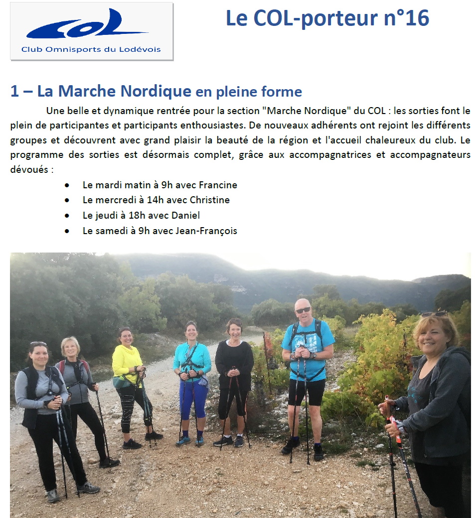 Activités, photos, et cartes topographiques des sorties de la section "Marche Nordique"